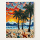 Beach art personalised notebook. An impasto oil painting style ai illustration of a beach full of palm trees, sea glass, sea shells and ocean waves at sunset. A bright colourful mesh of colours make this coastal art vibrant and beautiful!