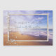 The sun just begins to peek above the ocean waves gently crashing on a sandy beach in this double landscape photograph. Both layers of the same image are separated by an image of sand, creating a frame around the top image. Shadows and pearls create greater depth and interest along with a quote for anyone who's heart belongs to the sea.