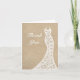 A beautiful lace wedding dress on a beach sand background decorates this thank you card, making it perfect for a beach, destination, tropical or nautical wedding or bridal shower. The inside has been left blank, ready for your personal message, and is subtly accented with another pair of cute starfish. If additional coordinating pieces are needed just contact us at prettyfancyinvites@gmail.com with your request.