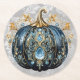 Beautiful bejeweled blue and gold pumpkin round paper coaster