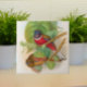 This colourful ceramic tile depicts a stunning Victorian vintage bird illustration, featuring two charming love birds (a pair of trogon birds, one red, one brown) sitting on a branch of green leaves and delicate pink flowers. Add an unexpected touch of nature to your bathroom, kitchen, or other tiled space with these lovely feathered friends. Unique, original décor and also makes a great trivet!