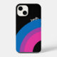 Beautiful bisexual pride iPhone 14 case gift on a bold black background for a bi friend featuring the pretty bisexuality flag colours shaped into a blue, purple, and pink rainbow. A cool custom queer present.
