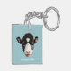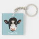 Beautiful Black and White Cow Face on Sky Blue Key Ring