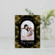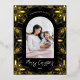 This beautiful Christmas greeting features an elegant gold botanical real foil framed photo arch on a black front, and return address and editable holiday message on the back.