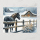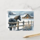 Beautiful Black Horse on a Christmas Farm Holiday Postcard