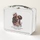 This is a standard metal lunchbox that appears to work just fine. We designed this box ourselves with an uploaded photo and custom text on the front and back. It looks absolutely beautiful except the front of the lunchbox is not centered like it shows in the photo. The print borders don't align with the inset flat part of the box where the preview photo online showed it perfectly centered in there. The back looks nice and centered though.
