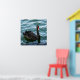 A beautiful black swan afloat in an sea of blue on this wonderful poster.