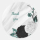 Beautiful black white and teal flowers with some teal blue leaves on silver grey marble background botanical wedding stickers