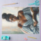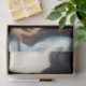 Tissue paper features a stunning brown-skinned woman with her hair in a high bun, wearing an elegant off-the-shoulder blue dress while reading a book indoors. An oil painting style portrait of a melanated beauty who might be relaxing and reading for fun or studying. Either way, she looks beautiful while doing it! Lady of leisure artwork by Dee Claire.
