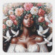 Beautiful Black Woman With Doves Floral Art Square Sticker