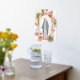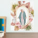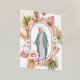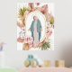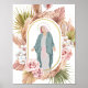 A beautiful print including a hand illustrated image of the Blessed Mother, watercolor florals, and gold foil details.