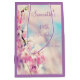 A beautiful modern contemporary floral birthday design suitable for any female of any age. A stunning printed image of pretty pink and white blossom on a stunning pastel coloured background with a lovely lilac border frame, with your event details. All text is fully customisable to meet your requirements, if you need any assistance in customising your product please contact me through my store and i will be very happy to help you.