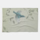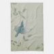 Beautiful painting of a blue warbler bird flying upwards placed on a soft ash green mottled background with elegant leafy vines. The design is given a faux fabric texture for effect. This design also comes on many other stationery products to suit all your wedding set needs.