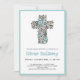 Beautiful Blue Floral Cross Baptism Invitation