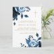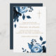 Classic navy blue floral religious confirmation invitation features an elegant gold cross and vintage style blue flowers on the front, with a beautiful dark blue indigo back of the card. Celebrate your Christian Denomination or Catholic sacrament of confirmation with this pretty botanical floral invitation.