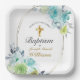 Beautiful Blue Floral Golden Cross Baby Baptism Paper Plate