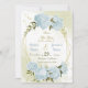 beautiful romantic save the date invitation featuring pretty blue flowers with some green leaves on gold geometric frame. The gold glitter details are simulated . For more customisation (change the font or its colour or change the layout ) click on personalise scroll down then click on (Click to customise further) . FOR MORE MATCHING PRODUCT click on the collection above