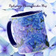 This pretty mug features my original photograph of beautiful blue and purple toned Hydrangea Garden flowers. The handle and inside of the cup are a blue tone to complement the artwork.