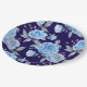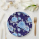 Beautiful blue roses, navy blue background, paper plate