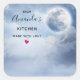 Made with love. kitchen stickers with a magical fantasy sky with fluffy blue clouds and a big beautiful moon. 2 white swans flying off together.