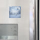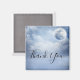 A magnet with a magical fantasy sky with fluffy blue clouds and a big beautiful moon. 2 white swans flying off together.