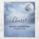 Wedding bottle labels with a magical fantasy sky with fluffy blue clouds and a big beautiful moon. 2 white swans flying off together.