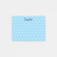 Jot down important information using these blue stars patterned post it notes. Featuring a blue star design with a template for your name, it makes a great school supply item. Place your order today!