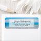Address labels with a landscape photograph of a tropical beach. Azure water and blue sky with gentle waves lapping at the shore with some clouds in the distance.