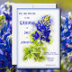A unique "one of a kind" photograph of a Texas Bluebonnet flower with stem and leaves. A close up of the blue petals and a soft background that fades to white with a blue frame. A modern design of type in the flower blue colour. Complete with your wedding information on the backside of this unique wedding invitation set.