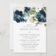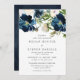 Beautiful Blush & Navy Watercolor Flowers Wedding Invitation