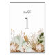 This lovely wedding table number card features beautiful boho botanicals and elegant typography. Together these elements create an rustic yet elegant wedding menu that would be perfect for a romantic wedding any time of the year. This design coordinates with our Beautiful Boho Botanical wedding suite. See the collection for more items! Design is the same on both sides.