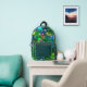 Pretty backpack with glowing bokeh lights in shades of green, blue, red, yellow, purple and orange.