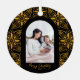 This beautiful Christmas ornament features an elegant gold colour floral botanical arch framed photo and stylish Merry Christmas script on a black background. Shop this store for coordinating Christmas greeting cards, and additional festive colour options!