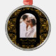 This beautiful Christmas ornament feature an elegant gold colour floral botanical arch framed photo and stylish Married Christmas script with the year on a black background. Perfect for newly married couple's first Christmas together as Mr and Mrs. Shop this store for coordinating Christmas greeting cards, ornaments, and additional holiday colour options!
