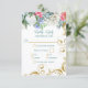 © Socialite Designs & LICENSORS. Elegant gold flourish, with teal and gold lettering, wedding RSVP with watercolor florals, in white, purple/blue, pink and green, ready to be personalised for your special event. Font style, text and paper type can be changed. Need HELP with customising or additional products with this design? Please do not hesitate to contact Socialite Designs.
