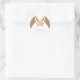 The sticker is made on wonderful paper and had no problem sticking to the bag that I purchased to put it on. I wanted to find a design that would be cute for the bride and groom and this one fit the bill as it has cute "bees" buzzing around and the wedding was taking place in a town called "Bee Cave". The packaging was great and protected the stickers. The website is easy to navigate and there are so many color choices. I had no problem finding a color that the bride was using on everything else selected. The design was adorable and there were many to choose from. You can make the figure as larger or smaller and you can place the photo and writting whereever you want to in the sticker. The printing is fabulous..better than expected.
