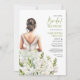 Beautiful bride with lavish bouquet white flowers invitation