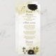 Beautiful brown ivory white and gold flowers with pretty leaves wedding menu.
