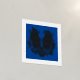 A silver real foil image of a butterfly on a blue background.