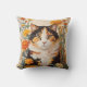 Beautiful Calico Cat With Marigold Flowers Cushion