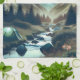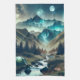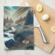 Beautiful Camping Scene with Mountains and Tent Tea Towel