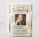 A beautiful celebration of life invitation featuring your loved one's photo and custom text. The background features white candles - calm and peaceful. (You can easily change the background photo to your own.) Classic yet unique - this template is so easy to personalise and will make a wonderful memorial keepsake too.