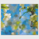 White beautiful cherry blossoms on a tree against the background of the green leaves and blue sky. The beauty of the spring season. You can transfer this design to a variety of other products, in particular tissue paper, blankets, bathmat and placemat, electronics bag, Christmas stocking, gift bag, etc. Use the Edit Design option to position the image on a product with a fit/fill function. A unique wrapping paper to wrap your gifts. Enjoy, buy one, and be happy.placemats
