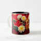 Chinese Dragon in 3D digital image with white peonies in front of a decorated background (model n°2) + golden Year of the dragon (original handwriting). Design on two-tone coffee mug. Matching greeting card, holiday postcard, sticker.