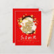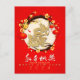 Chinese red lanterns with lucky ideogram and blossoms around a pale pink circle + wishes in Chinese (white modern calligraphy) and in English, Dragon golden paper-cut (image printed - model n°1) in the centre of the circle + customisable 2024. Design on greeting Card with the same pale pink background inside the card and the same Dragon in back. You can easily change background colour. Matching greeting card. Perfect for Chinese Dragon New Year.