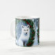 This is a beautiful arctic fox framed with a Christmas wreath.