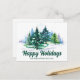 This beautiful custom company holiday postcard features gorgeous green Christmas trees in a winter landscape above your customized business name and Happy Holidays. Personalized holiday marketing for a corporation or family looking for non photo postcards.