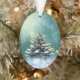 Beautiful Christmas Tree with Snow and Gold Lights Ornament