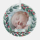 Decorate your Christmas tree this holiday season with a personal glass ornament personalised with a photo and the year. The perfect ornament for your baby's first Christmas or your first Christmas as married or any other significant milestone as well as a yearly family photo or yearly photo of the kids. Personalised ornament with your photo inside a pretty Christmas wreath with green leaves and red berries.