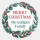 Merry Christmas from sticker with a beautiful Christmas wreath with greenery and berries personalised with your family name. Christmas wreath Christmas gift sticker in green and red with a berry wreath.